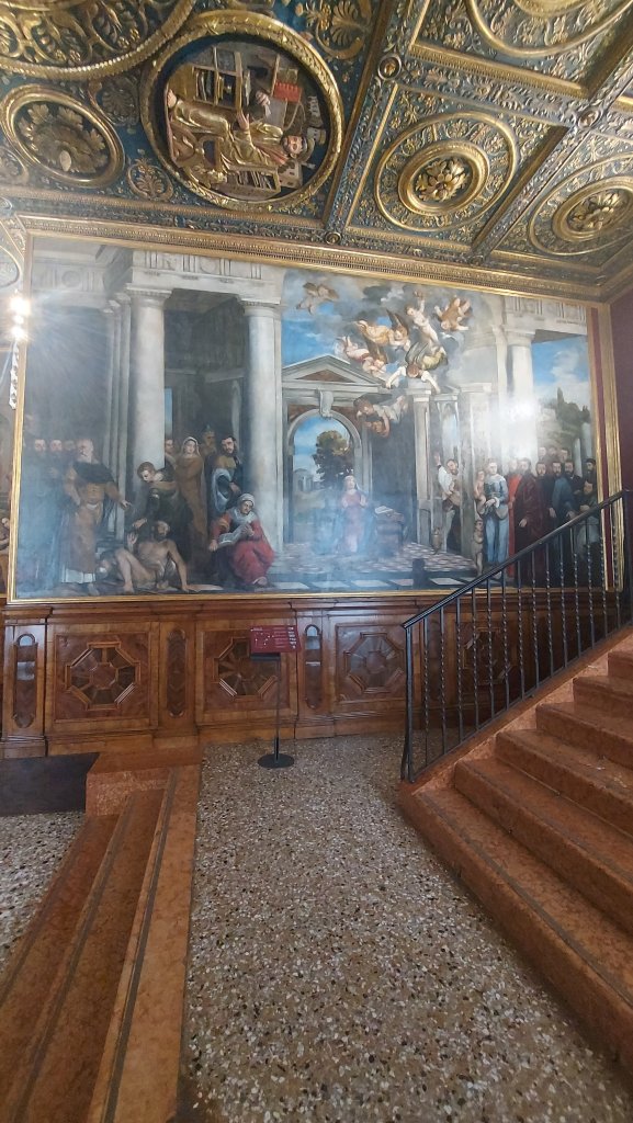 La Galleria per come è sviluppata non mi ha entusiasmato particolarmente per fruibilità e scelte espositive. Agèe Ho trovato con più “carattere” il ponte dell’Accademia che l’edificio in sé e il contesto esterno (per come è fruito/trattato/valorizzato/vivo). All’interno il bookshop è nutrito ed è subito all’entrata. (L’idea di fare cassa facile, si percepisce nettamente, come per il Correr e tutta San Marco). Il percorso si sviluppa al piano superiore, con le varie sale tematiche, per poi tornare con l’ultima sala con i capolavori di Tintoretto e Veronese(piano terra). Diverse opere e sale erano in allestimento e fuori per mostre. Tralascio volutamente di elencare la grandezza degli autori e delle opere esposte che si presentano da sole e con l’audio guida, mi soffermo sullo spazio e il percorso espositivo. (Sito consultabile, degno di nota)